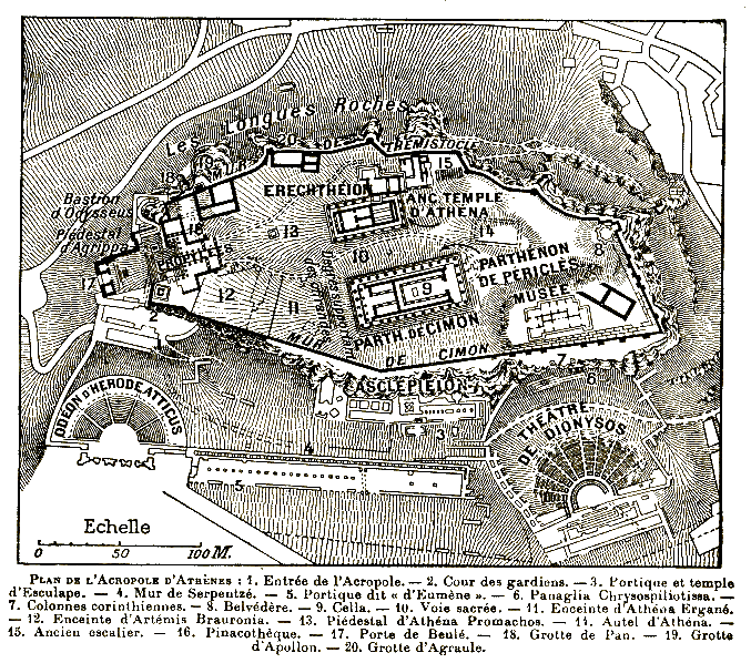 Plan of Acropolis in Athen. French, Larousse 1922 | autor neuveden | https://commons.wikimedia.org | Public domain | 2021-10-28 |