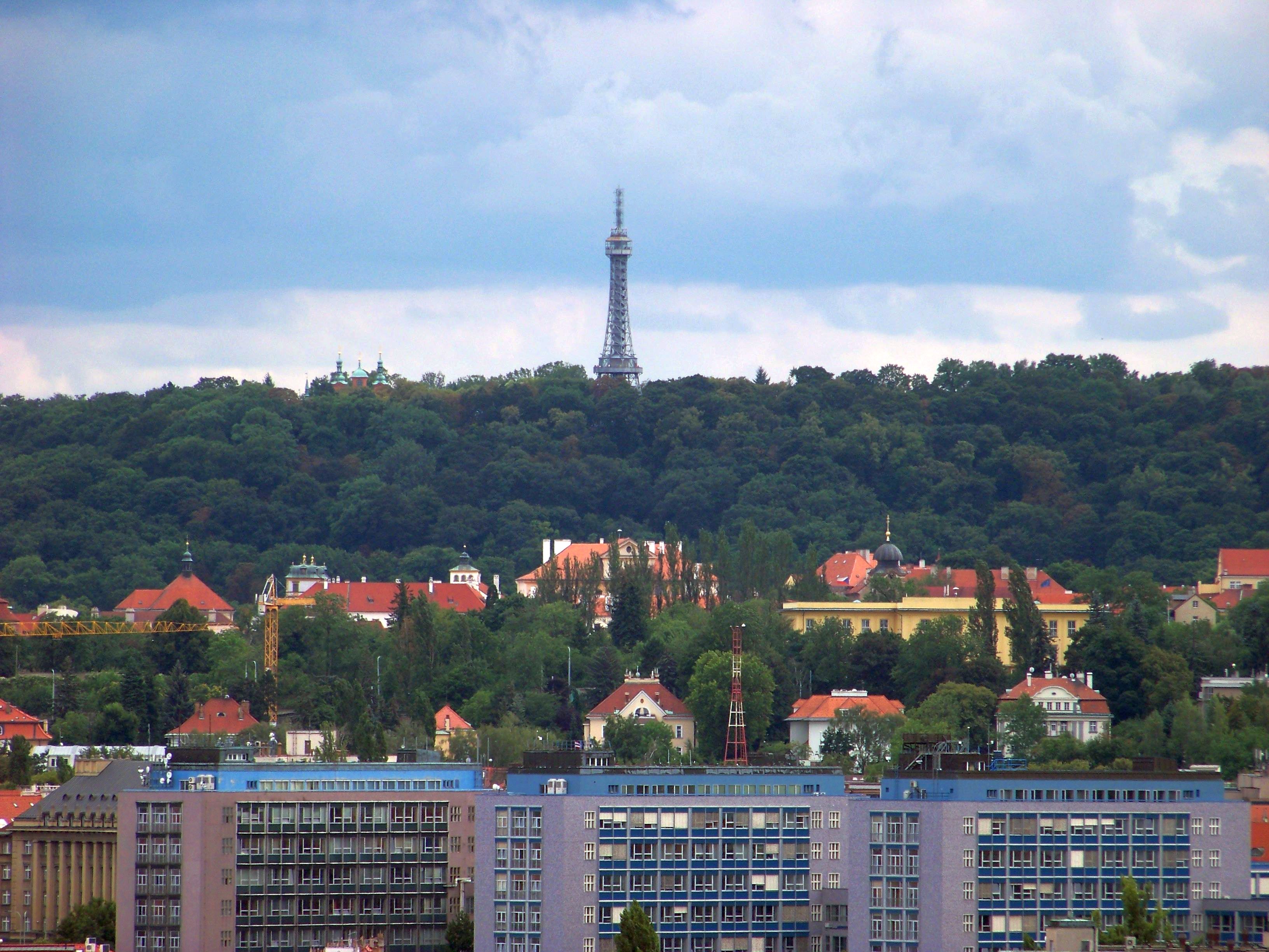 Petřínská rozhledna, výhled od zříceniny Baba, Praha-Dejvice | Wikipedista:ŠJů | https://commons.wikimedia.org | CC BY-SA | 2021-10-28 |